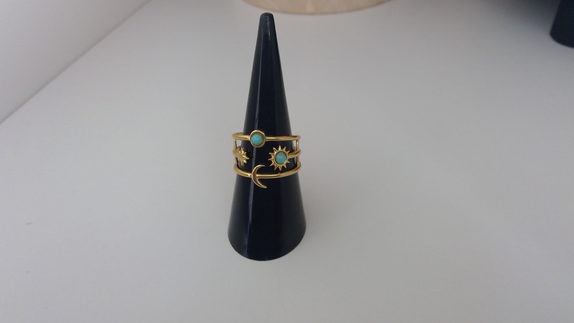 Apportez une touche magique à votre style avec la bague LUNA ! En acier inoxydable doré, elle brille d'élégance tout en restant résistante. Son insert demi-perle bleue turquoise ajoute une note fraîche et pétillante, parfaite pour illuminer vos looks du quotidien. Ajustable, elle s’adapte facilement à tous les doigts, pour un confort sans compromis. Osez l’allure lunaire et laissez-vous séduire par son charme unique !