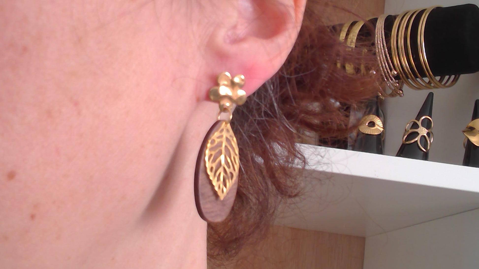 Les boucles d'oreilles ZOE, en acier inoxydable doré, combinent robustesse et élégance. Leur design floral, rehaussé d’une feuille en métal dorée, apporte une touche délicate et raffinée, idéale pour sublimer toutes vos tenues avec naturel et charme.