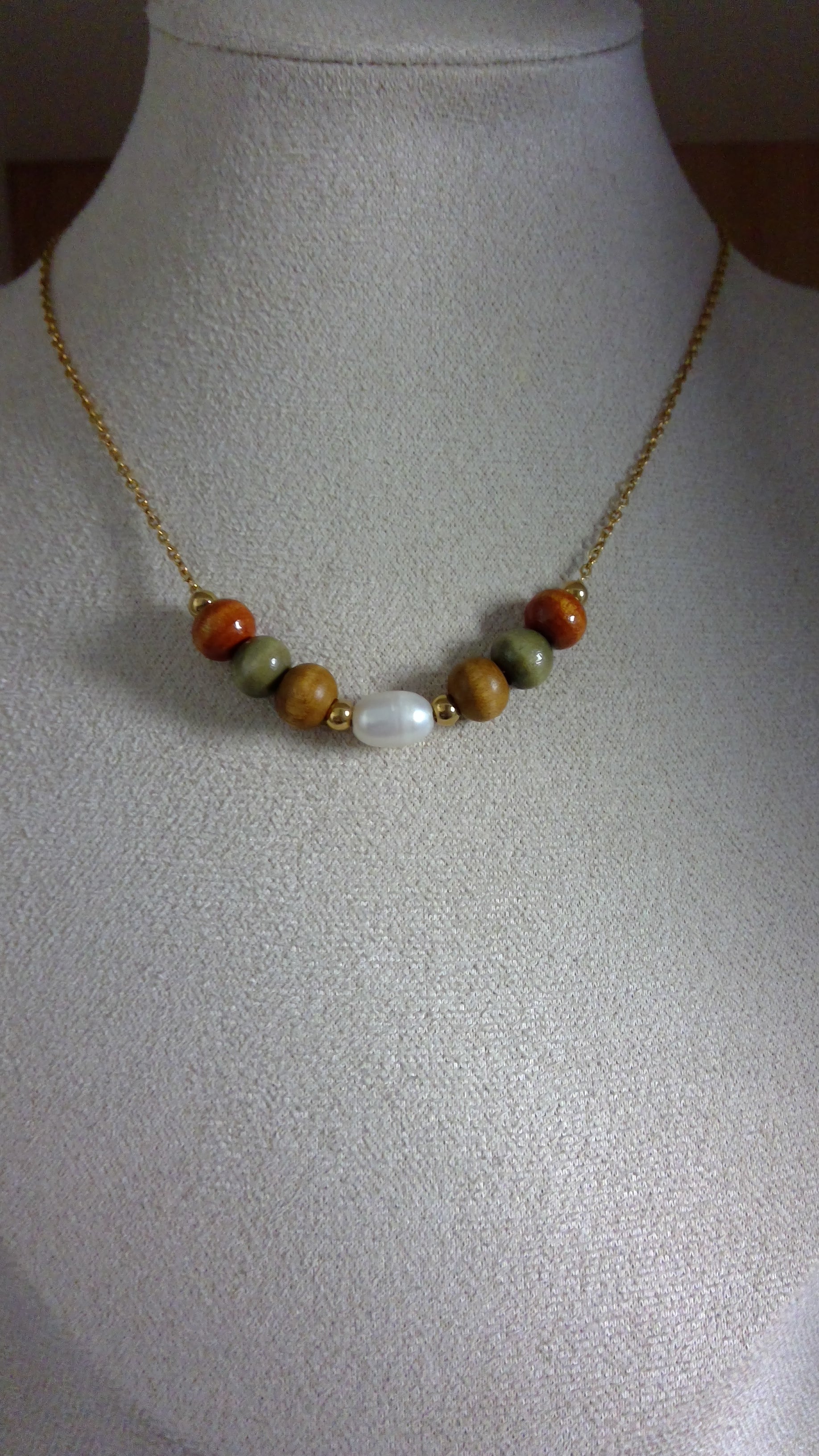 Le collier Noémie allie élégance et naturel avec sa chaîne en acier inoxydable doré, résistante et éclatante dans le temps. Ses perles en bois apportent une touche chaleureuse et authentique, tandis qu’une perle d’eau douce sublime l’ensemble avec délicatesse. Ce bijou léger et raffiné accompagnera votre quotidien avec douceur et style.